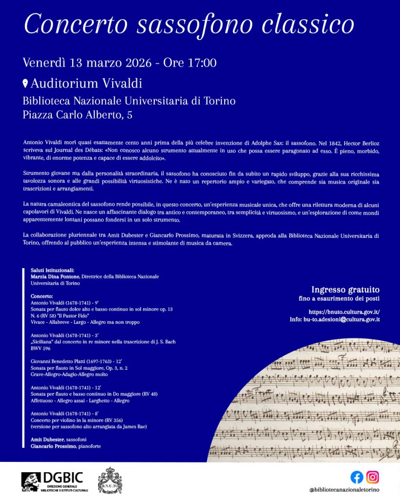Auditorium Vivaldi, Biblioteca Nazionale Universitaria; Piazza Carlo Alberto 5 – Torino